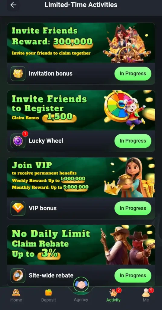 The Agency Program in BBRSGame allows registered users to earn commissions by inviting new players to the platform. When your invited users join and participate in games, you may receive daily bonuses based on their activity.